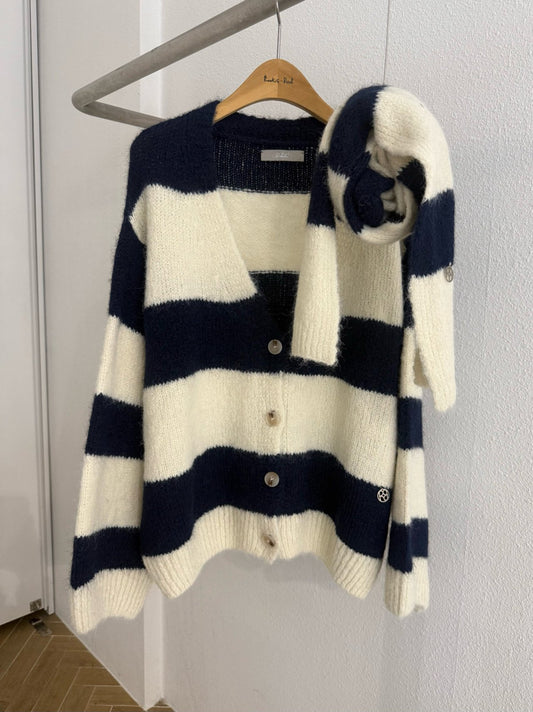 Stripe Knit Cardigan & Scarf Set