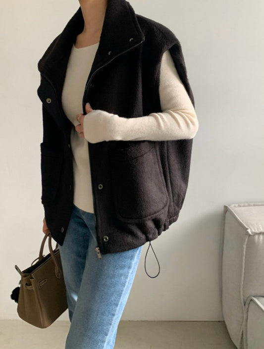 Wool-Blend High-Neck Padding Vest