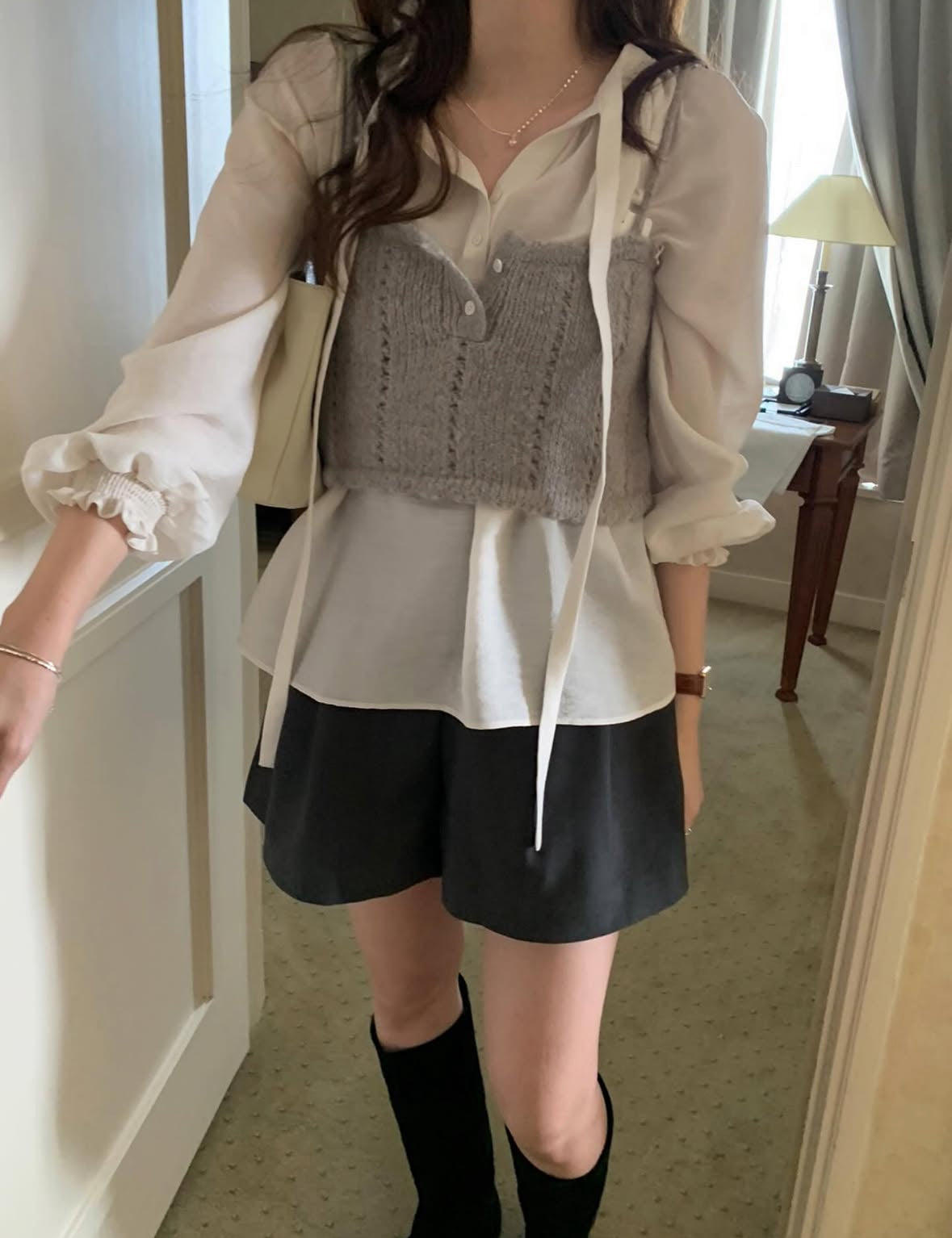 A soft knit bustier crafted from a cozy alpaca-wool blend, designed to layer beautifully over blouses or shirts.