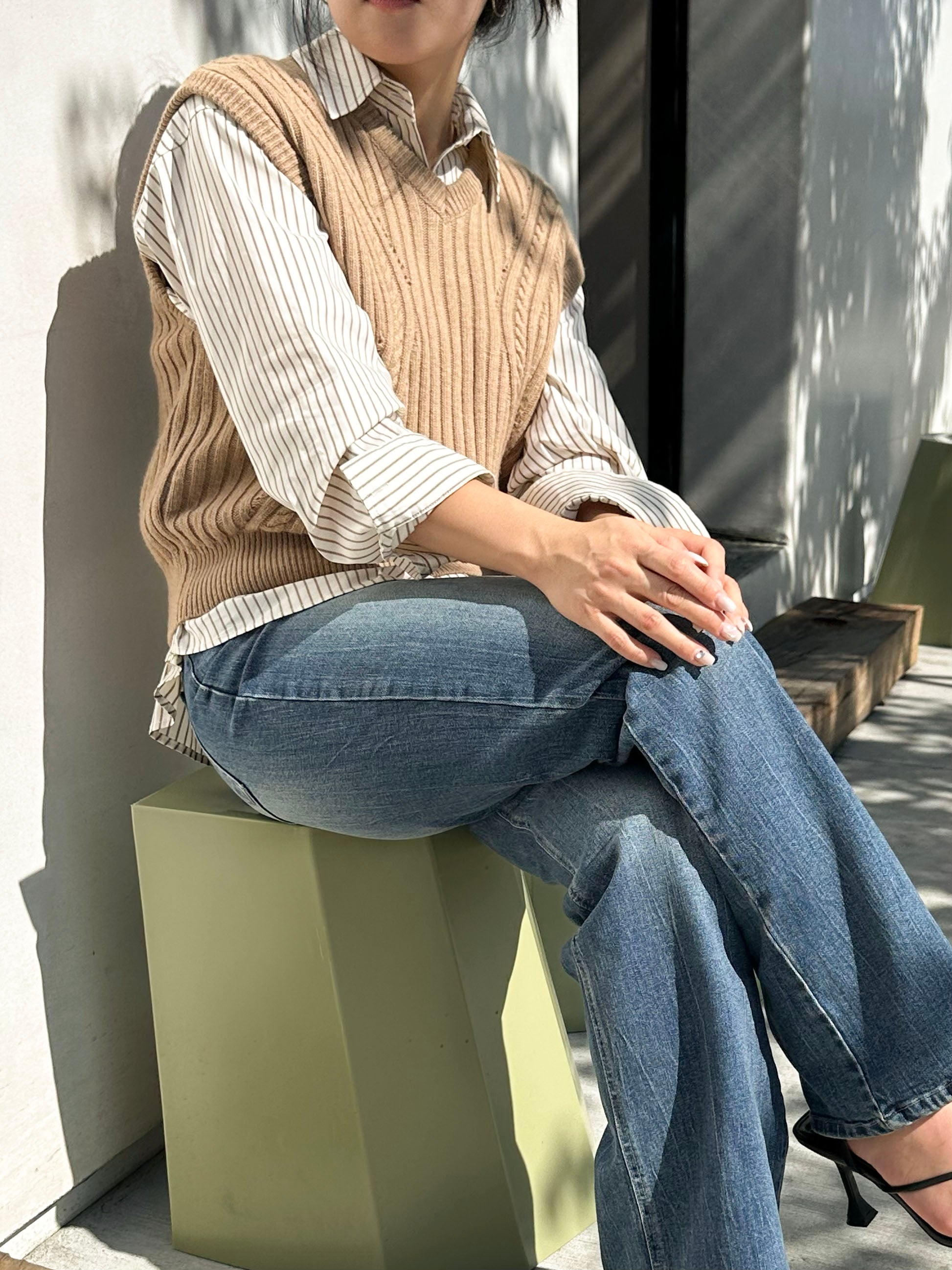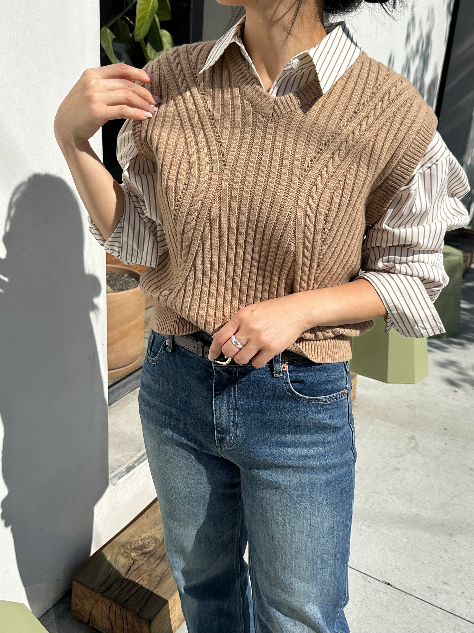 Experience the elegance of premium Korean craftsmanship with this cable-knit oversized vest. Expertly woven with refined textures, it delivers both warmth and timeless sophistication. The intricate cable-knit detailing creates a subtle yet elevated design, perfect for discerning wardrobes.