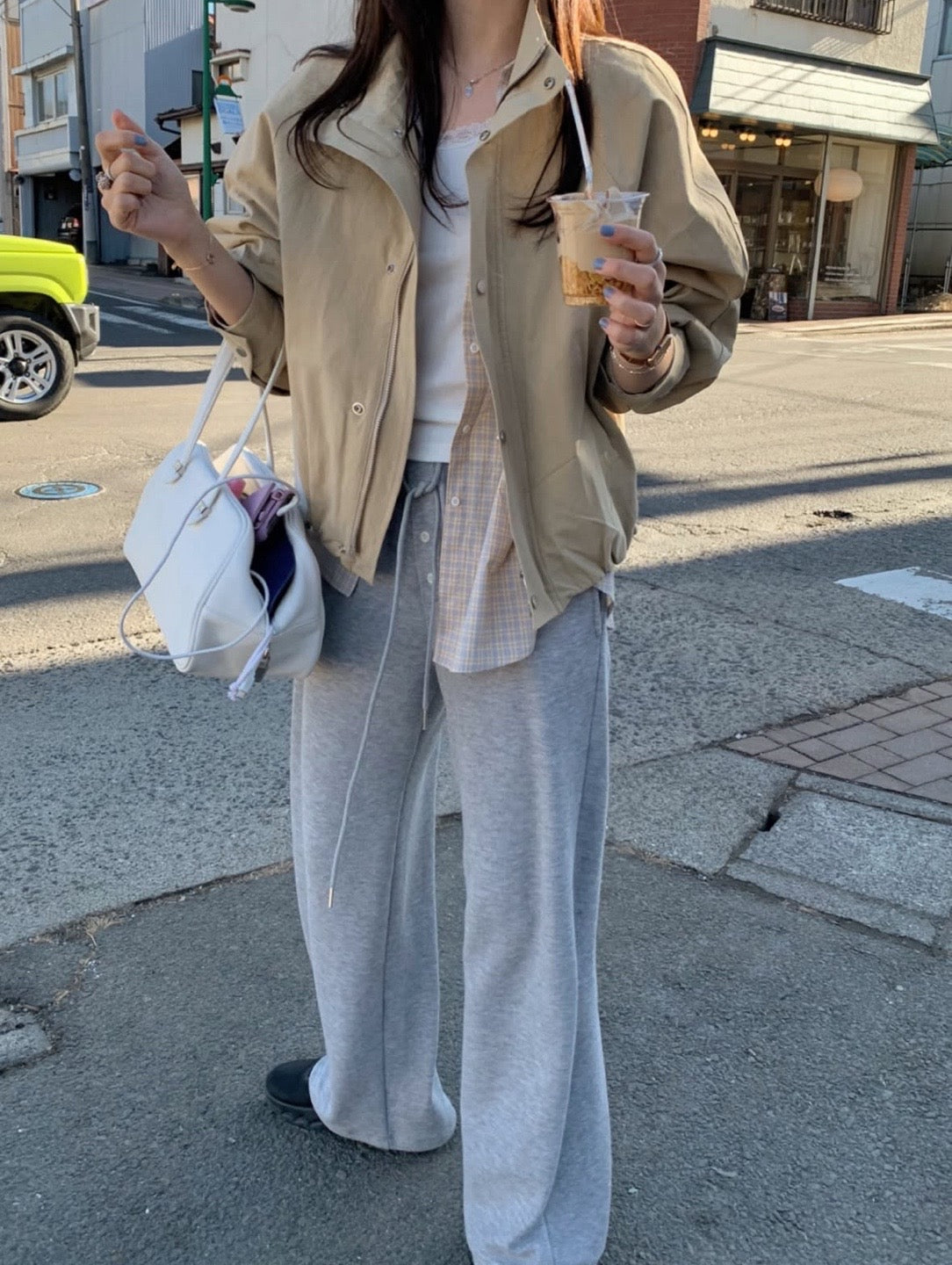 This cotton stand collar jacket is designed with a relaxed silhouette and subtle volume sleeves for a naturally structured look. The front zipper and snap-button closure add practicality while keeping the design minimal and refined.