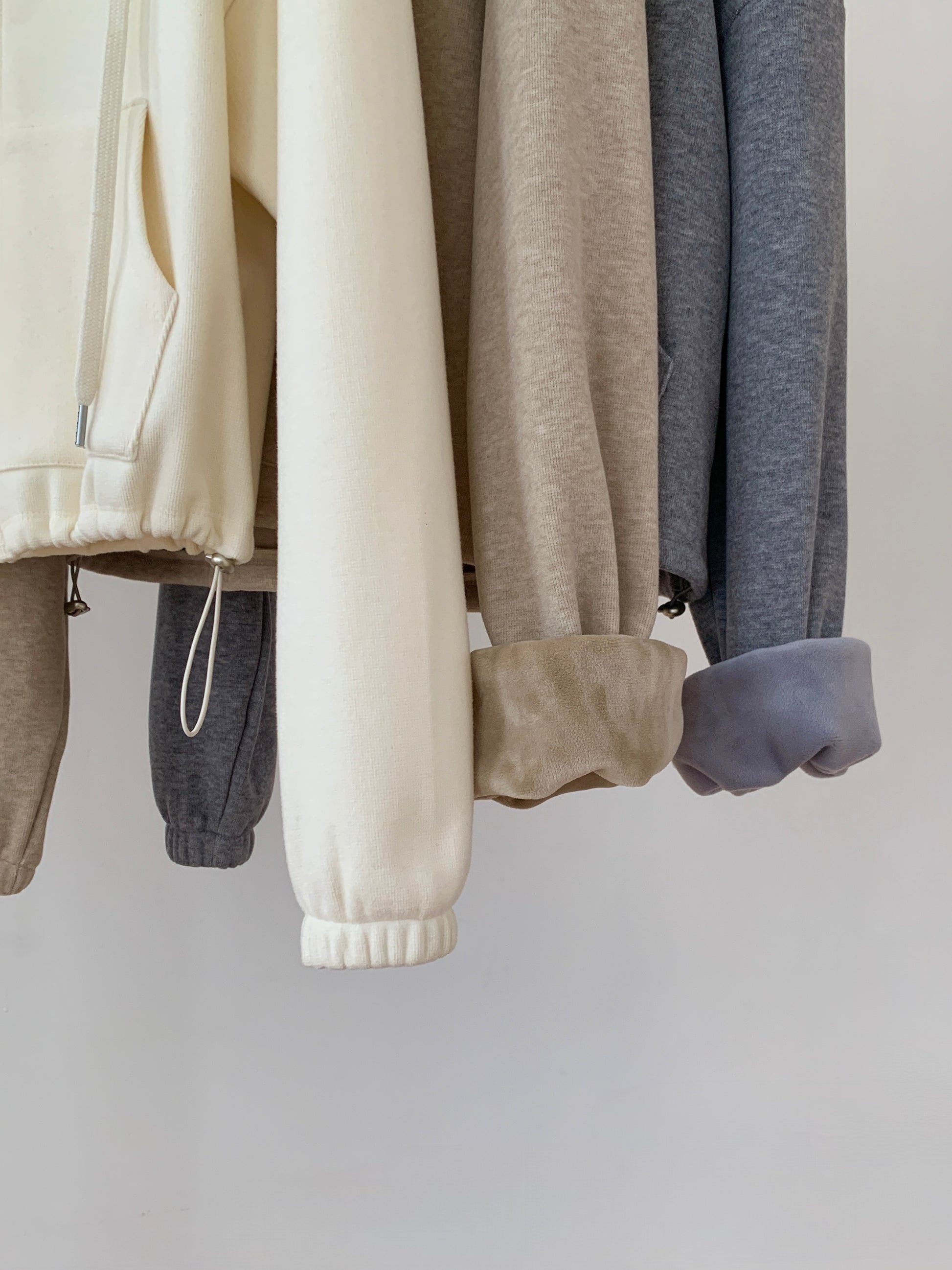 The interior is fully lined with ultra-soft fleece, giving a plush and comfortable feel against the skin while keeping you warm throughout the day. The adjustable hem string lets you switch between a relaxed straight fit or a softly cinched shape.