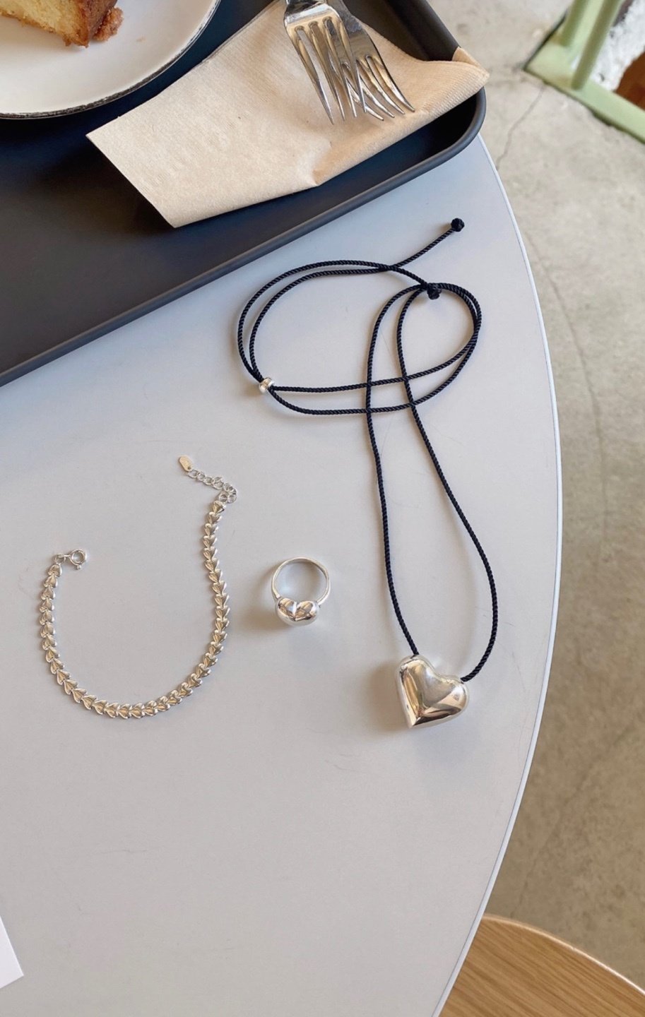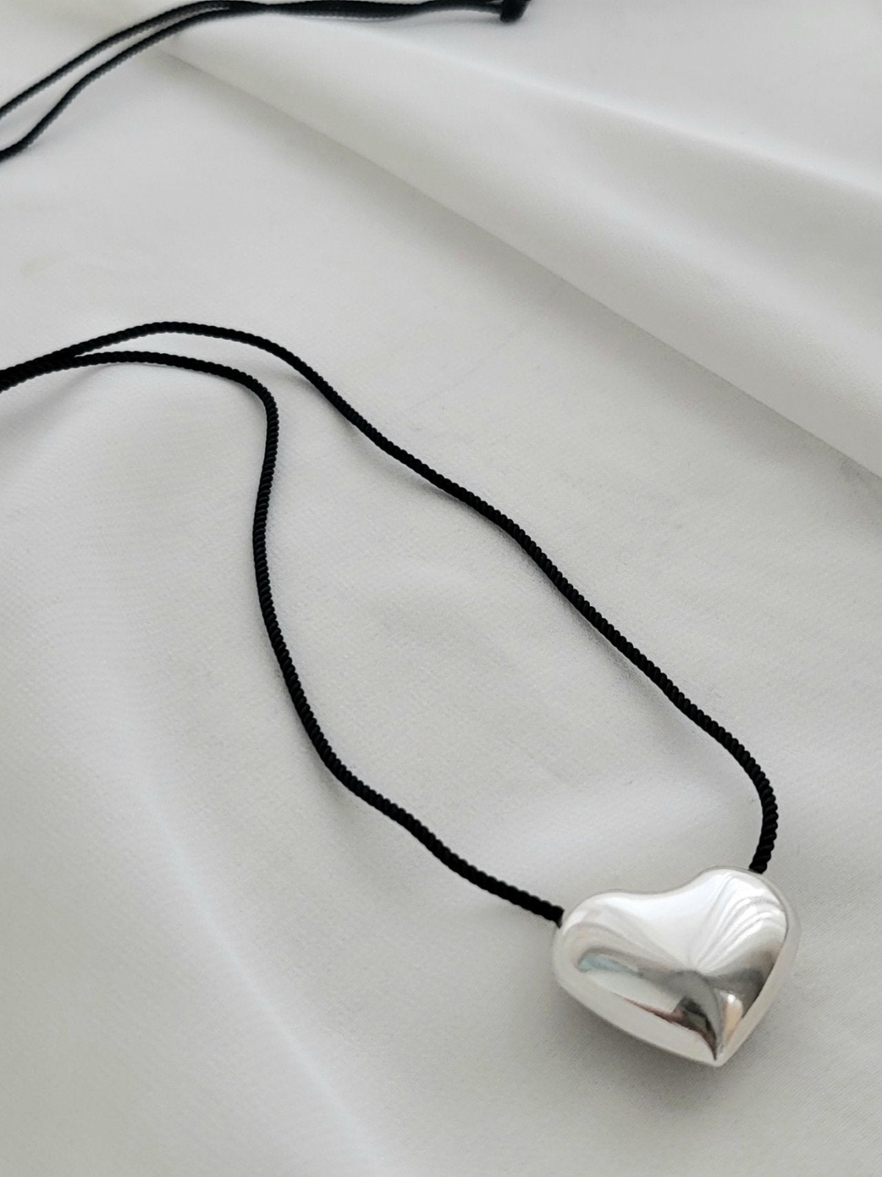 An elegant heart pendant plated in high-quality gold, strung on a sleek black cord.