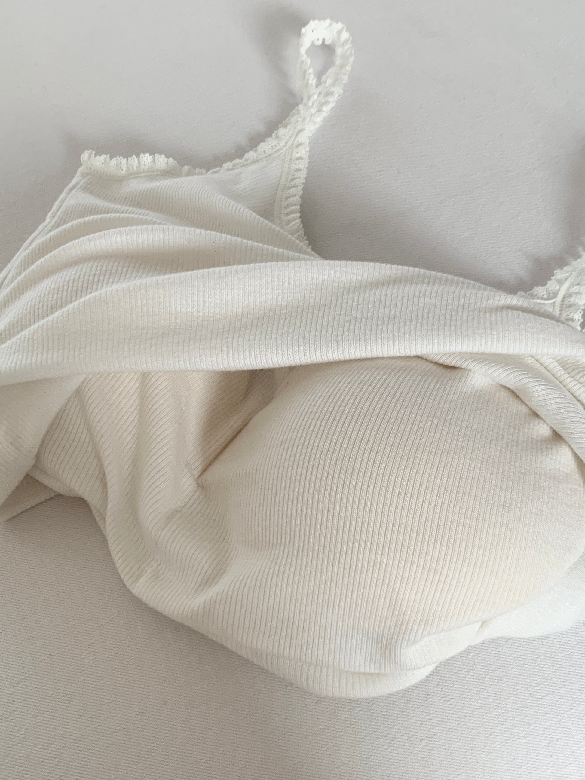 This ribbed tank is made from a smooth modal blend that feels soft, breathable, and gentle on the skin. The built-in bra cups are securely sewn inside, so they stay in place even after washing — no shifting, no adjusting.