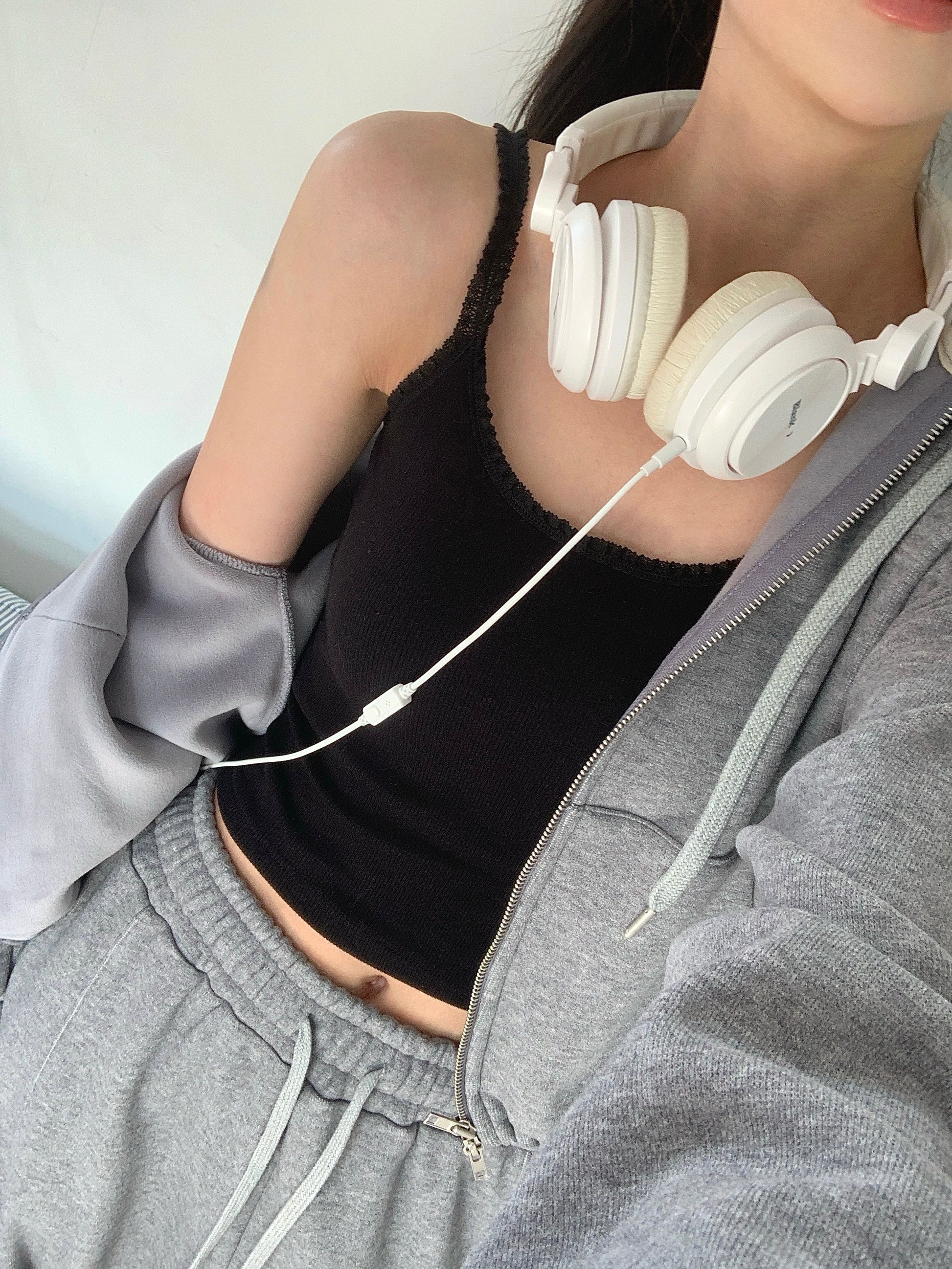 Delicate lace trim adds a subtle feminine touch, making it perfect to wear on its own or layered under hoodies and knits.