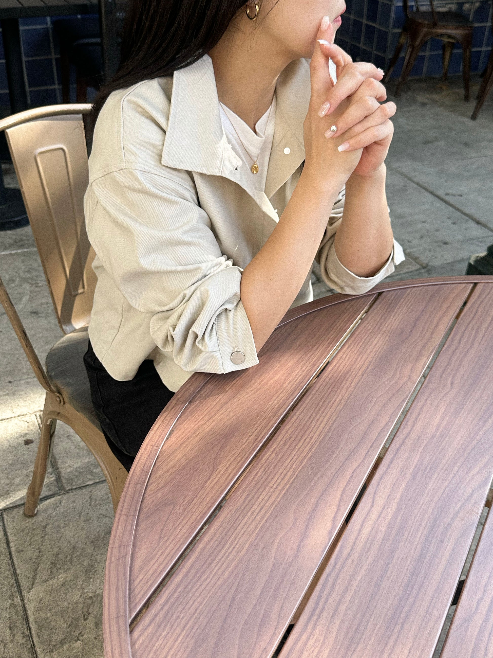 - S: Shoulder 14" / Bust 32–34" / Sleeve 21.5" / Length 22.5"