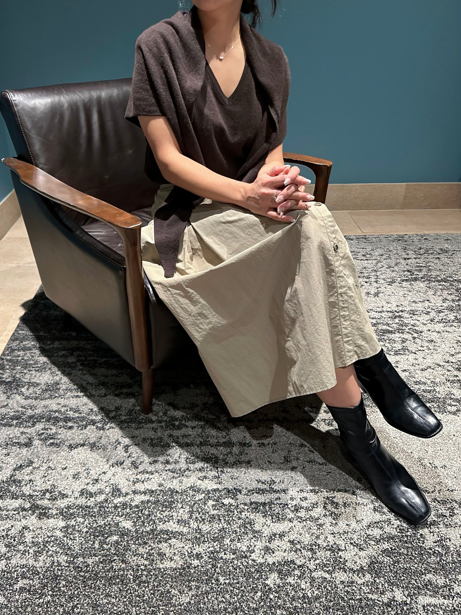 A timeless layering essential crafted from soft premium wool. This V-neck knit vest offers a relaxed yet refined silhouette, making it perfect for styling over shirts, blouses, or lightweight knits. Its versatile charcoal hue blends seamlessly into any wardrobe, delivering effortless sophistication for both casual and office looks. Pair it with the optional matching wool shawl for added warmth and style.